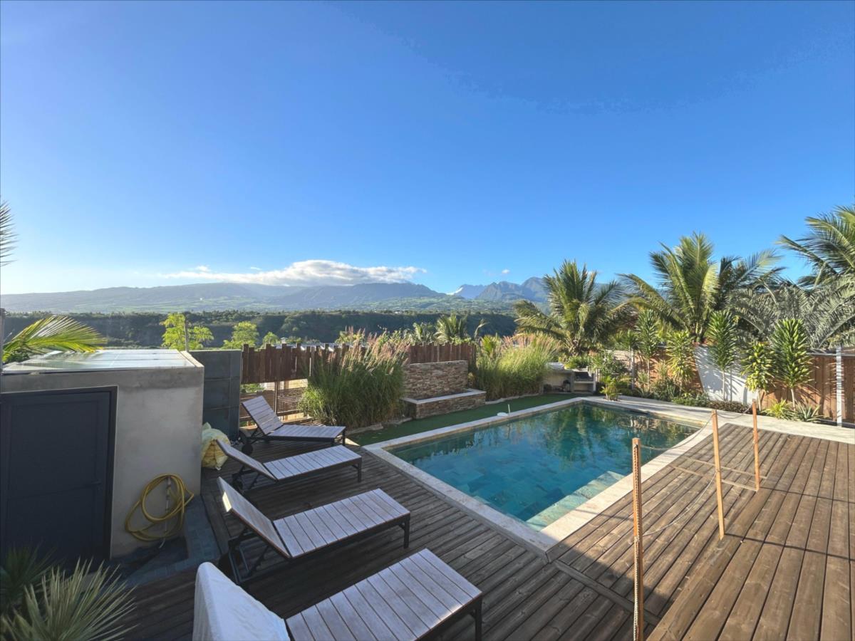 SAINT-PIERRE, ensemble immobilier de standing composé de deux logements édifiés sur un terrain d'environ 1150 mètres carrés avec une magnifique vue montagne. Une villa d'architecte de 2024 comprenant au rez-de-chaussée un spacieux séjour/cuisine s'ouvrant sur une grande varangue d'environ 44 m², un cellier, une chambre avec salle d'eau-dressing-toilettes donnant sur varangue. A l'étage un dégagement, trois chambres avec dressing, une quatrième chambre avec salle d'eau-dressing-toilettes, une salle d'eau, des toilettes. Piscine au sel 8x3,50 mètres. Entièrement climatisée. Deux chauffe-eau solaire. Centrale photovoltaïque 7,5 Kwa en autoconsommation + revente EDF.En contrebas, dans un environnement verdoyant, un bungalow bois climatisé, sans vis-à-vis, d'une surface utile d'environ 41 m² comprenant un séjour, une salle d'eau avec toilettes, un espace couchage en mezzanine et une terrasse avec cuisine.En contrebas de celui-ci, des fondations par plots sont installées pour la construction d'une deuxième bungalow dont le permis est purgé.Prix de vente 789 000 euros honoraires de négociation inclus à la charge du vendeur.Vous souhaitez avoir des informations complémentaires et organiser une visite ? Contactez Frédéric MONNIOTTE au 0692 371 721.Cette annonce vous est proposée par le service négociation de l’office notarial AUBERT & SIDNEYLes informations sur les risques auxquels ce bien est exposé sont disponibles sur le site Géorisques : www.georisques.gouv.fr#aubertetsidney #officenotarial #notaires #conseil #lareunion #reunion #immobilier #immobilierreunion #immobilier974 #saintpierre #maisonsaintpierre